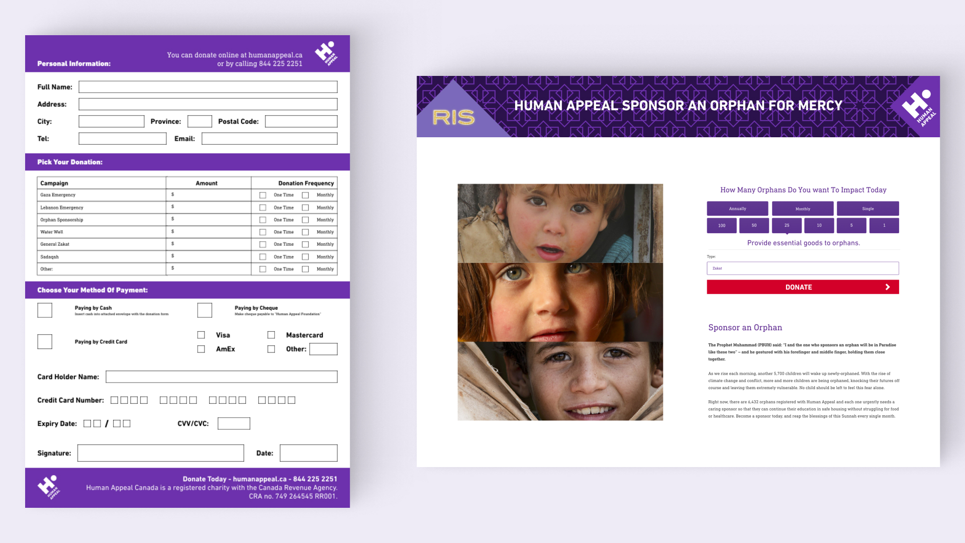 HUMAN APPEAL, A custom form I made and a custom donation webpage I designed for a charity event.