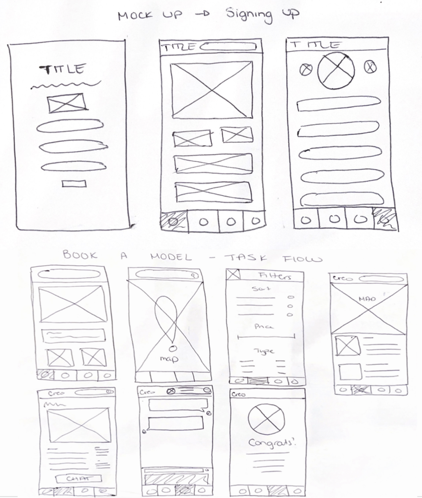 I began with qualitative interviews across photographers, models, studio owners, agency reps, and independent creatives. Rather than asking hypotheticals, I had them walk me through their most recent shoot, who they contacted, what tools they used, what bottlenecks slowed them down.